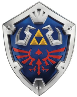 Official Legend Of Zelda Blue Plastic Shield with Red, Silver, and Gold Accents. Measures 19in long x 15in wide x…