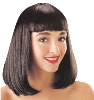 This sleek and sasssy brown wig with no bangs is soft to the touch and looks failry realistic.$49.00 -